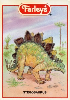 This series of cards came inserted one per box in Farley brand fruit snacks. The cards show a color picture of a dinosaur on the front with statistics on the back and directions for making the card glow in the dark. |